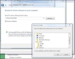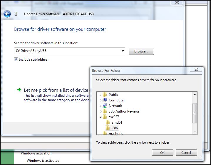 Click the Browse button and find the AXE027 folder that you unzipped from the driver download. In the screen capture, click on the axe027 folder and click OK.